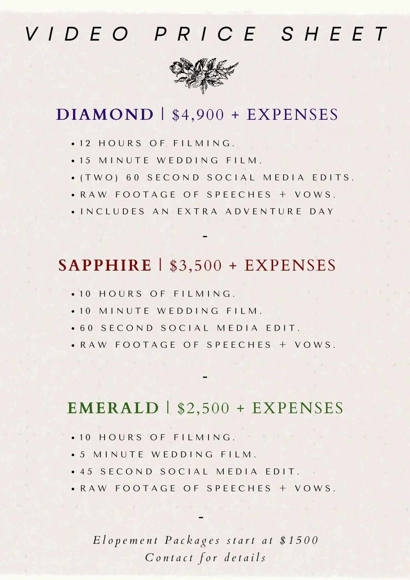 My style as a filmmaker is a combination of documentary meets cinematic. I do my best to mingle with your crew so that I can stay out of the way and let you eat up every moment of your day.